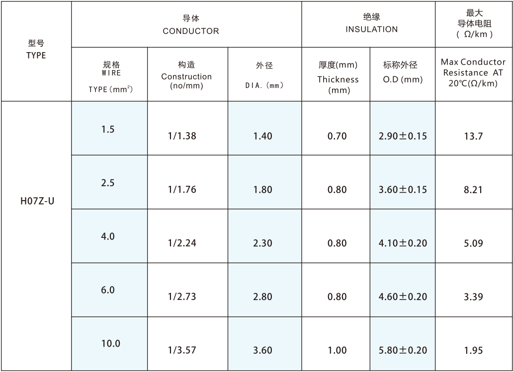 The conductor adopts Class I conductor 1.5-10mm2 Tin plated or bare copper wire