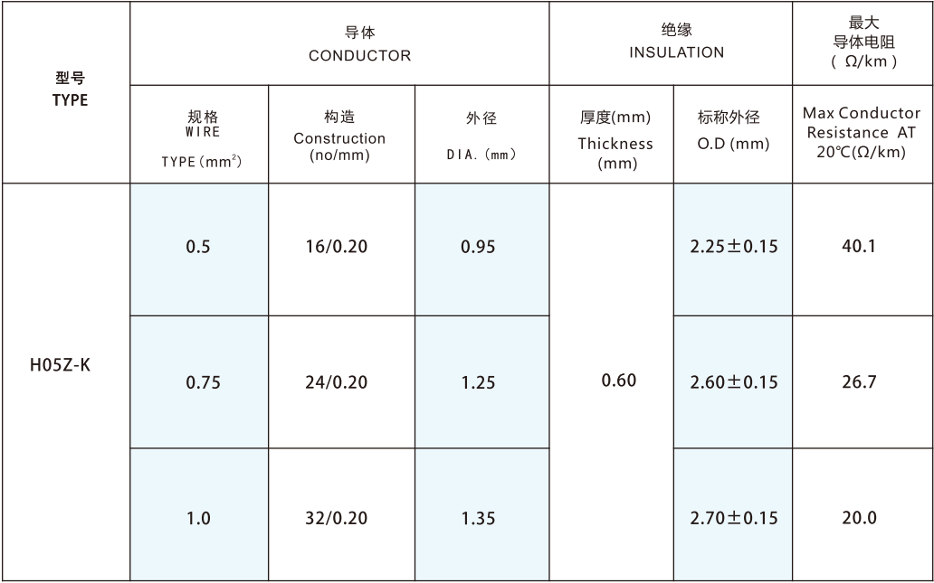 The conductor adopts a type of conductor 0.5-1.0mm2 Tin plated or bare copper wire