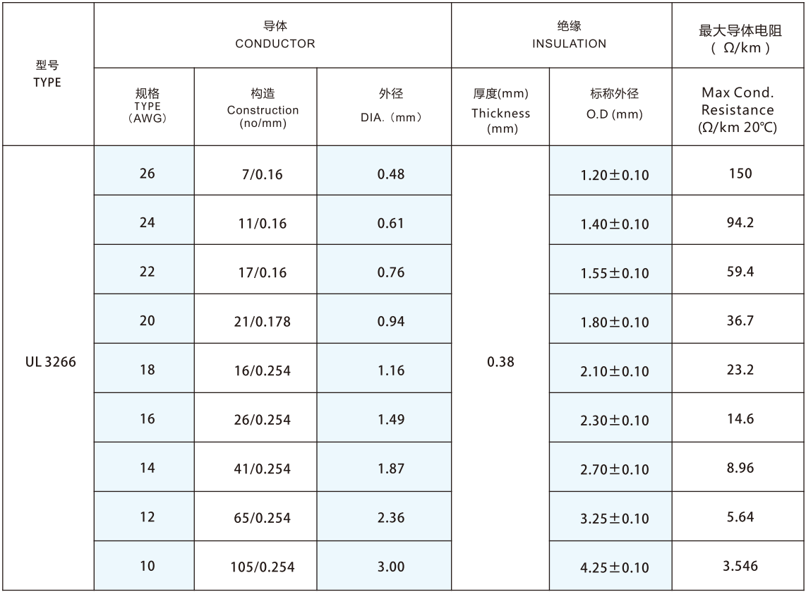 Solid or Stranded, tinned or bare copper conductor 32-10AWG