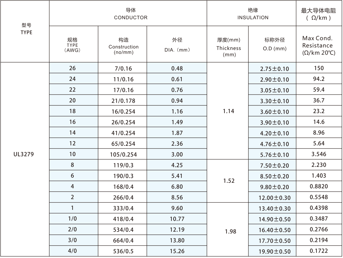 Solid or Stranded, tinned or bare copper conductor 26-4/0AWG