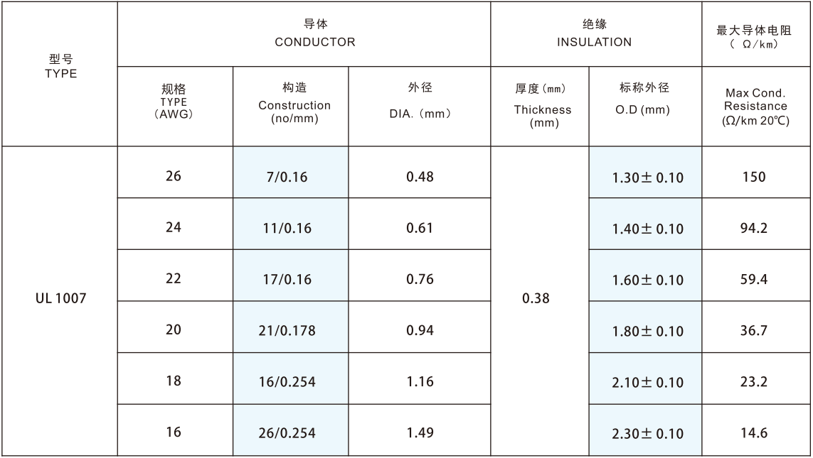Solid or Stranded. tinned or bare copper conductor 26-16AWG